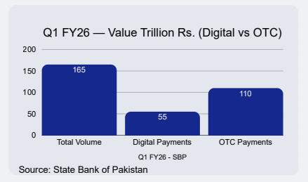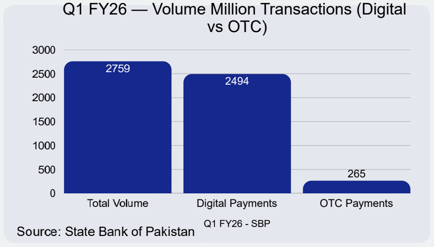 Pakistan’s retail payment ecosystem is now operating at national scale. According to the State Bank of Pakistan, in Q1 FY26, 2.5 billion payments were processed through digital channels, representing around 90 percent of total retail payment volume, up from 87 percent in the same quarter of the previous fiscal year (Q1 FY25). Growth is increasingly app-led: approximately 2.0 billion payments were conducted via mobile banking and wallet applications in the same quarter, accounting for roughly 81 percent of all digital payments and processing PKR 33.7 trillion in value. This scale signals a structural shift. Digital payments in Pakistan are no longer confined to pilots, early adopters, or urban niches. They are embedded across banking, branchless banking, and consumer-facing platforms nationwide. The country has successfully crossed the threshold from experimentation to mass usage.